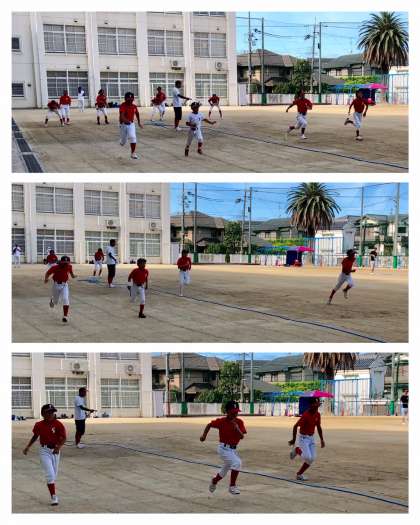 8月12日(月)山の日、晴明丘ソフトボールチームが、朝早くから練習に励んでいます。
