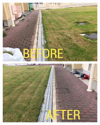 定期的に芝刈りを行うとともに、今日は、体育館側の芝の際刈りを行いました。