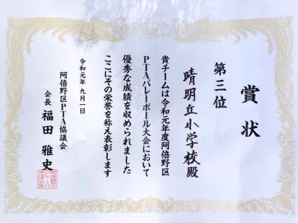 最後に、昨日行われた阿倍野区PTA親善バレーボール大会の表彰が行われました。校長先生が熱戦の様子を少しお話されました。