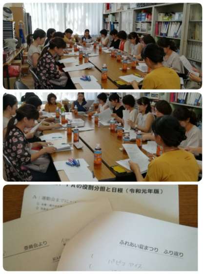 各委員会の活動報告、ふれあい子供夏まつりのふり返り、行事報告、運動会にむけての説明が行われました。