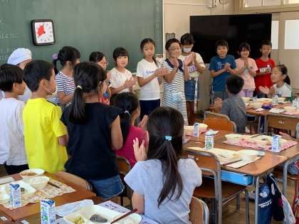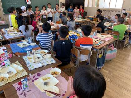 今日の給食では、夏休み中に誕生日を迎えた児童のお祝いをしました。