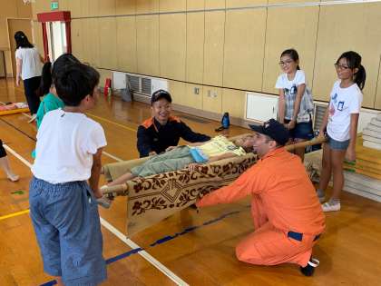 止血の仕方、喉に食べ物がつまったときの対処法を学びました。
