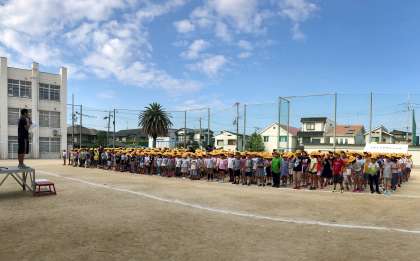 9月11日(水)、わくわく集会の隊形ではなく、今日は各学年ごとに集合しています。