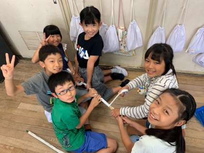 完成した児童は、すぐに他の友達を手伝っていました。