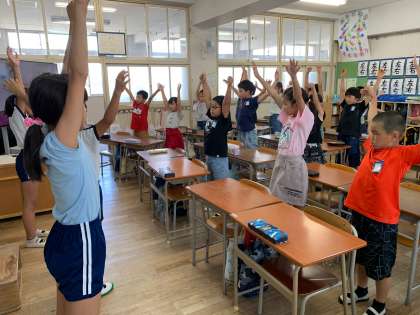 今年度から、児童会のみなさんが休み時間に整理運動を教えてくれます。