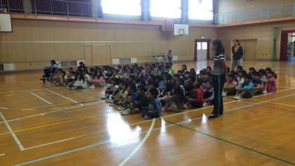 前半は、ひまわり学級の児童が自己紹介をしました。、
