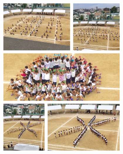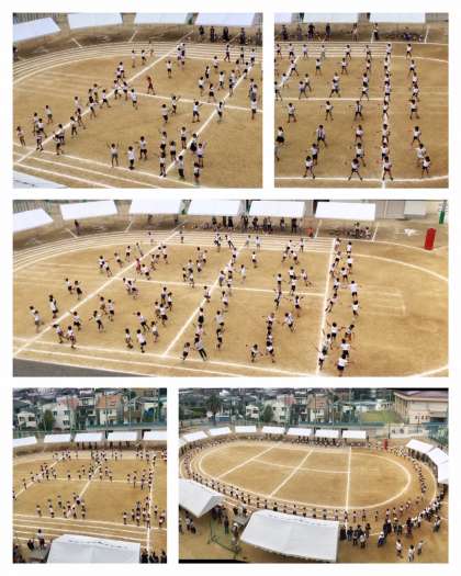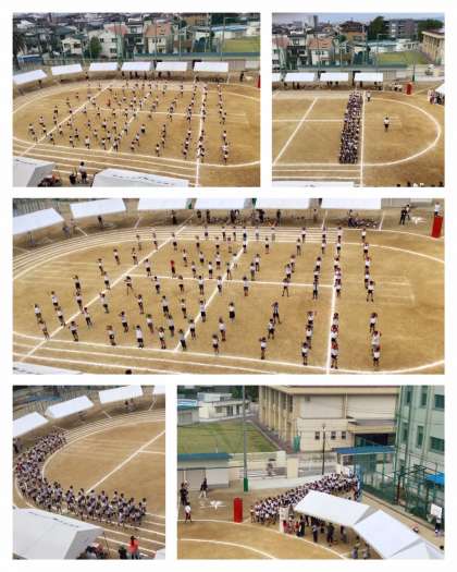 個人走の入退場練習をしてから、団体演技「カラフル レインボー」