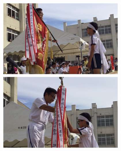 運動会35(閉会式、優勝旗・準優勝盾授与、学校長講評)