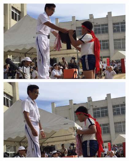 白組応援団長に優勝旗が、紅組応援団長に準優勝盾が授与されました。