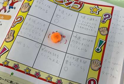 自分のいいと思うことを、自分で考えてビンゴ用紙に書き、それを友達に当ててもらいます。