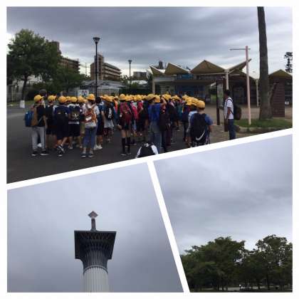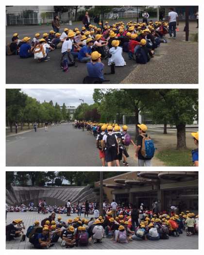 鶴見緑地駅は、小学生の集団がいっぱいです。