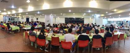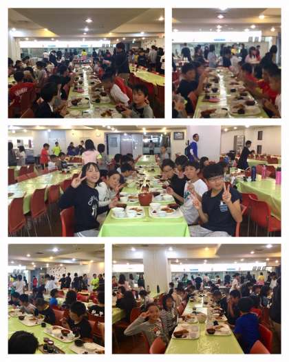カウンターに並んで、配膳してもらいそろった班から食事しましす。