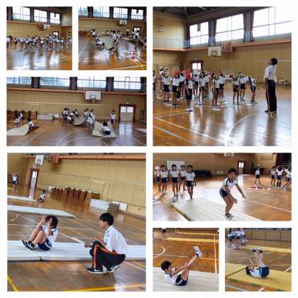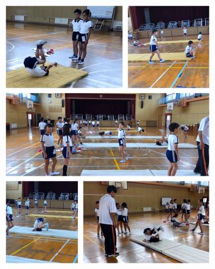 10月23日(水)5時間目、4年3組のマット運動の様子です。