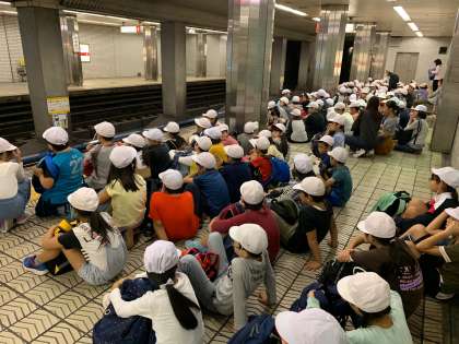 朝の新大阪方面の御堂筋線は、大変な通勤ラッシュでしたが、子ども達は車内マナーを守って乗車することができました。