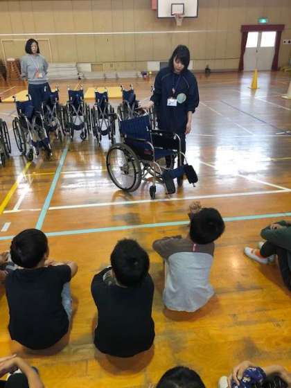 ○総合的な学習の時間での体験学習も3回目を迎えました。今回は、車椅子体験です。
