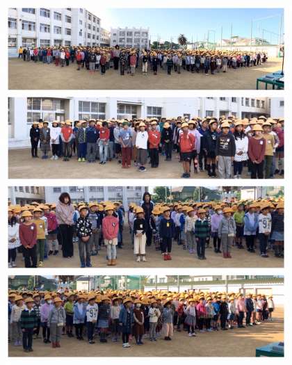 11月5日(火)、今朝は最低気温が10.9度まで冷え込みましたが、子どもたちは元気に整列しています。