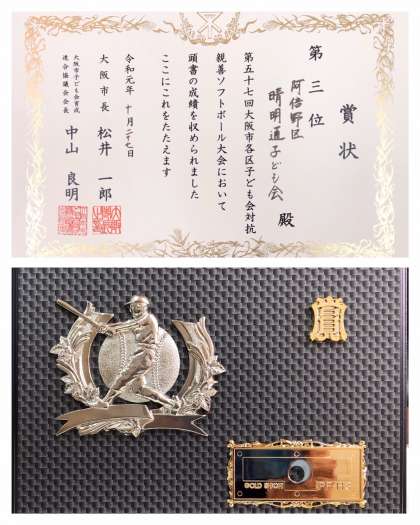 晴明通り子ども会ソフトボールチームが、大阪市各区子ども会対抗親善ソフトボール大会において、第3位に輝きました。おめでとうございます。