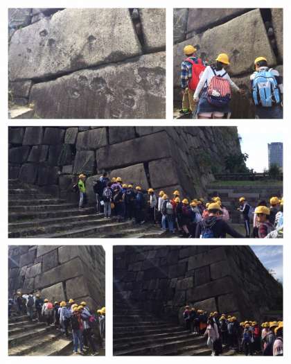 機銃掃射の跡をまじかに見てさわることで、体感できるものがあったのではないでしょうか。強固な石垣が、爆弾によって歪んでいる光景も実際に見ることができました。