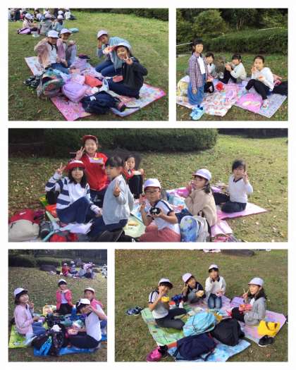 みんなで食べるお弁当は美味しく、楽しそうです。