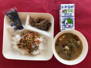 冬野菜のみそ汁には、はくさい、ごぼう、にんじん、あおねぎなど具沢山の汁物で、肌寒くなってきた今の季節にピッタリな献立でした。