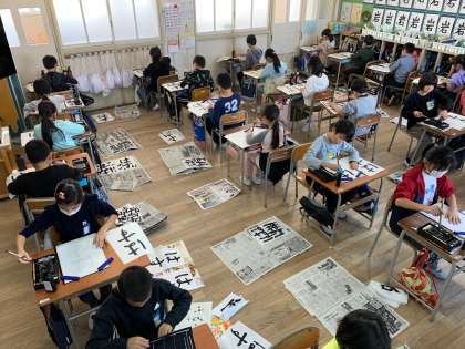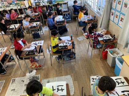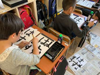 「むすび」の部分の筆使いがとても難しく、子ども達はお手本をじっくり見ながら取り組むことができました。