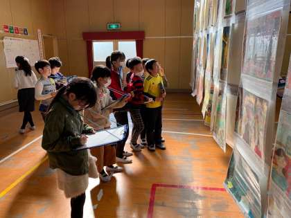 鑑賞の時間、子ども達は、友達の作品のすてきなところをたくさん見つけて、鑑賞カードに書いていました。