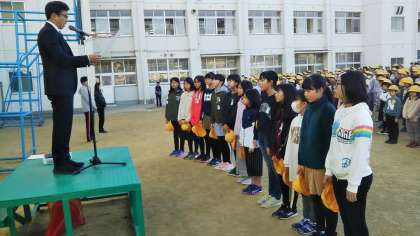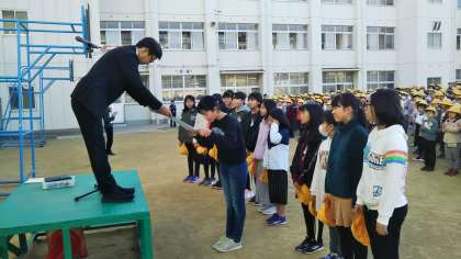 児童朝会にて、