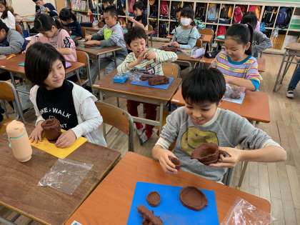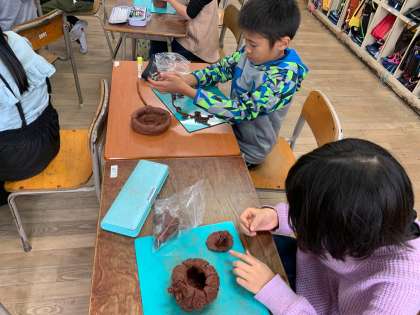 テーマは「入れ物」ということで、カップ、花瓶、ペン立て、茶わん、小物入れ、貯金箱など、様々な入れ物ができあがりました。