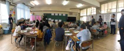 関西学院大学の佐藤教授にも参観していただき、その後の研究討議、総合的な学習の時間について指導助言をいただきました。授業力向上に向けて、先生方も研修に努めています。
