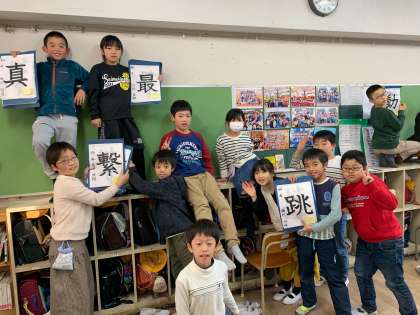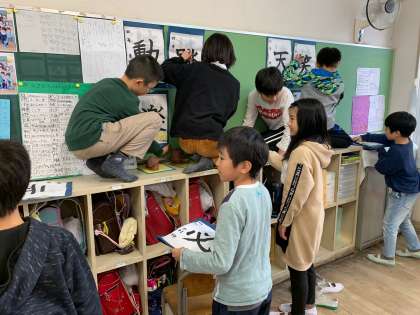 昨日、クラブ活動が終わって早く戻ってきた児童が、教室の掲示物を外してくれています。