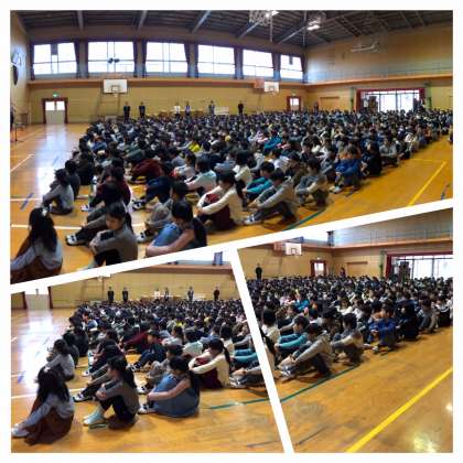2学期終業式で、年末年始は1年の大切な節目で今年の目標をしっかり立てましょう、冬休み規則正しい生活をしましょう、の二つのお願いをしました。