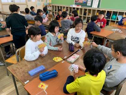 冬休みの思い出のスピーチをしたり、年賀状を配ったり、班でトランプをしたりと、和気あいあいとした雰囲気の1日でした。