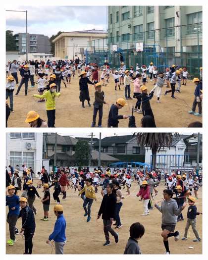 9:30〜9:40の休み時間を利用して、リズムなわとびに取り組んでいます。