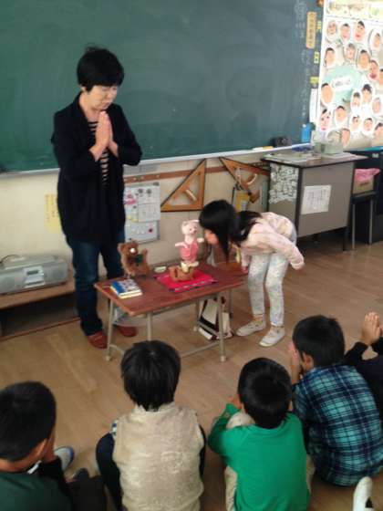 今日の2〜4時間目に 1〜4年生のお話の会がありました。