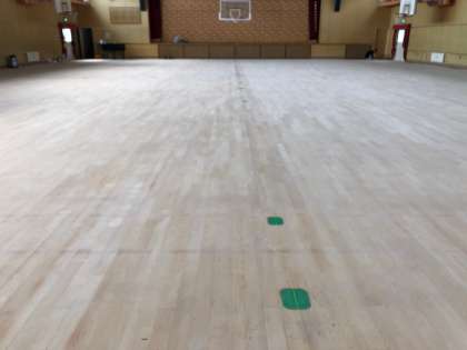 体育館床のサンダー掛けは終わりました。現在、白木の床になっています。