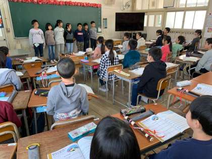 音楽の歌唱テストに向けて、「赤いやねの家」を練習をしました。