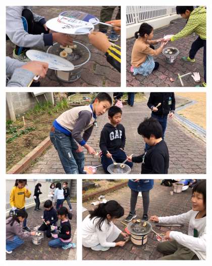 授業のようす(3−3) 火おこし・もち焼き