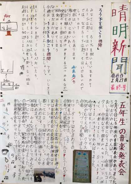 【新聞委員会】晴明新聞(令和2年2月27日最終号)