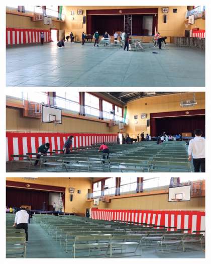 3月17日(火)、午前中から教職員みんなで、明日の卒業式の準備をしています。