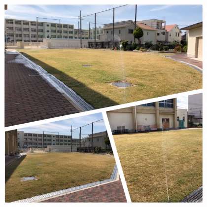 5月になって、少しずつ新芽が出てきて緑色に変化してきています。5月下旬には、美しい芝生広場になると思います。