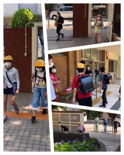 本日の分散登校は、2・4・6年生の2班です。マスクを着けていますが「おはようございます!」の元気な声が聞こえます。