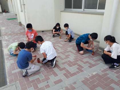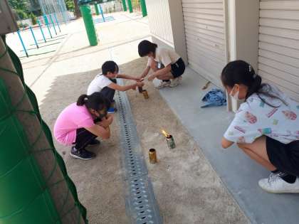 6年生、理科「ものの燃え方と空気の動き」の実験をしました。