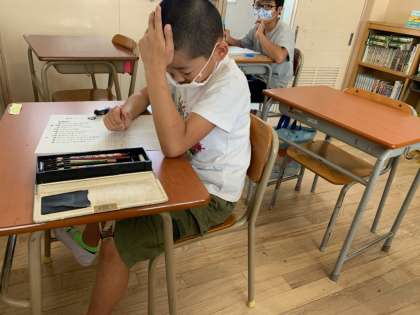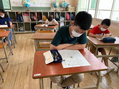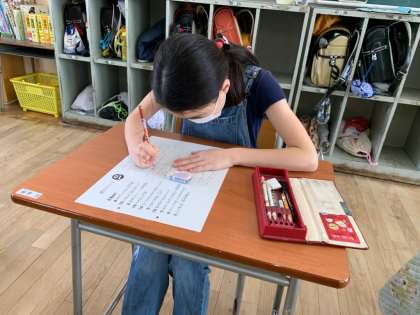 とめ、はね、はらいなどに気を付けて、一生懸命に書いている子ども達の様子です。