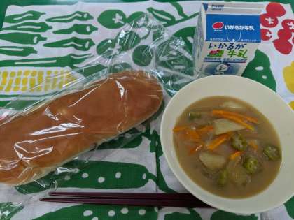 6月12日(金)のこんだては、「みそ汁、おさつパン、牛乳」です。