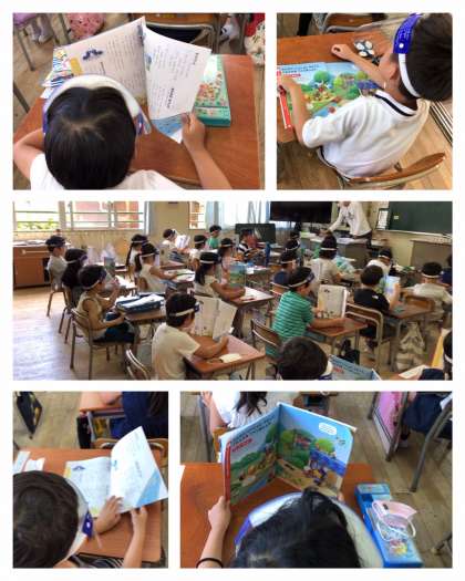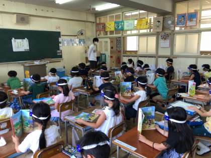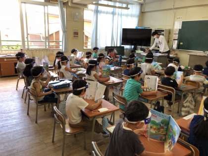 フェイスシールドを着用して、CDに合わせてうたっています。
