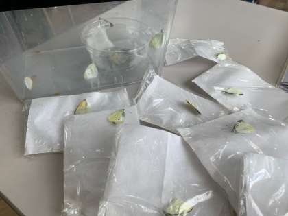月曜の朝、モンシロチョウが20匹も成虫になっていました。
