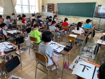 筆の持ち方、半紙の裏表、姿勢、用具の置き方等を再度確認しながら取り組みました。