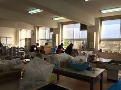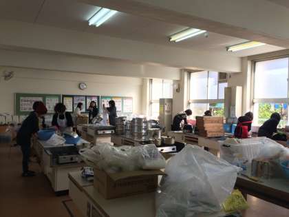 明日土曜日のPTAもちつき大会の準備を朝から、PTA実行委員会の方を中心に