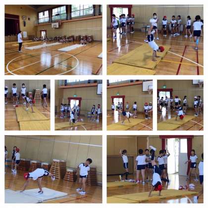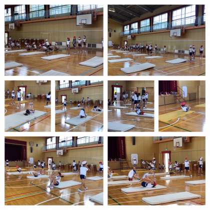 7月2日(木)1時間目、4年2組は体育館で「マット運動」
