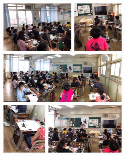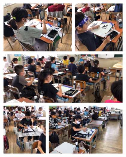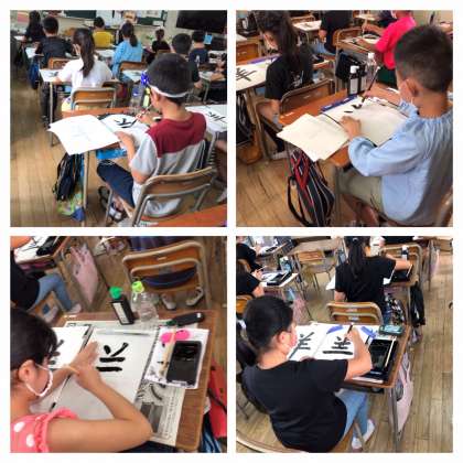 実際に墨汁をつけて、ていねいに筆を下ろします。